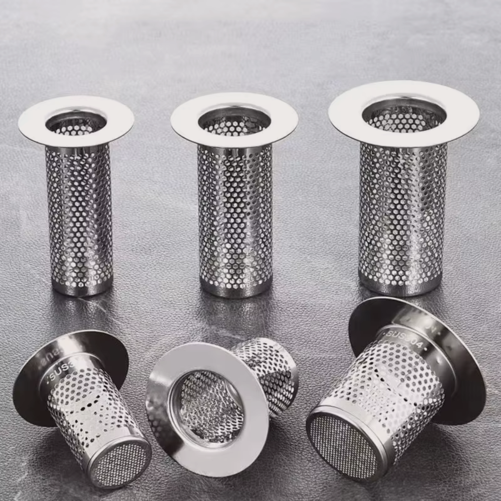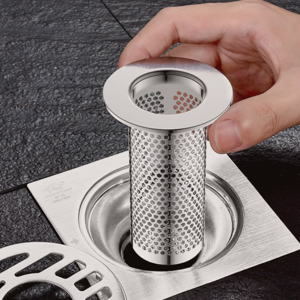 Hergestellt aus hochwertigem Edelstahl , filtert er Haare, Essensreste und Schmutz, bevor sie in den Abfluss gelangen.